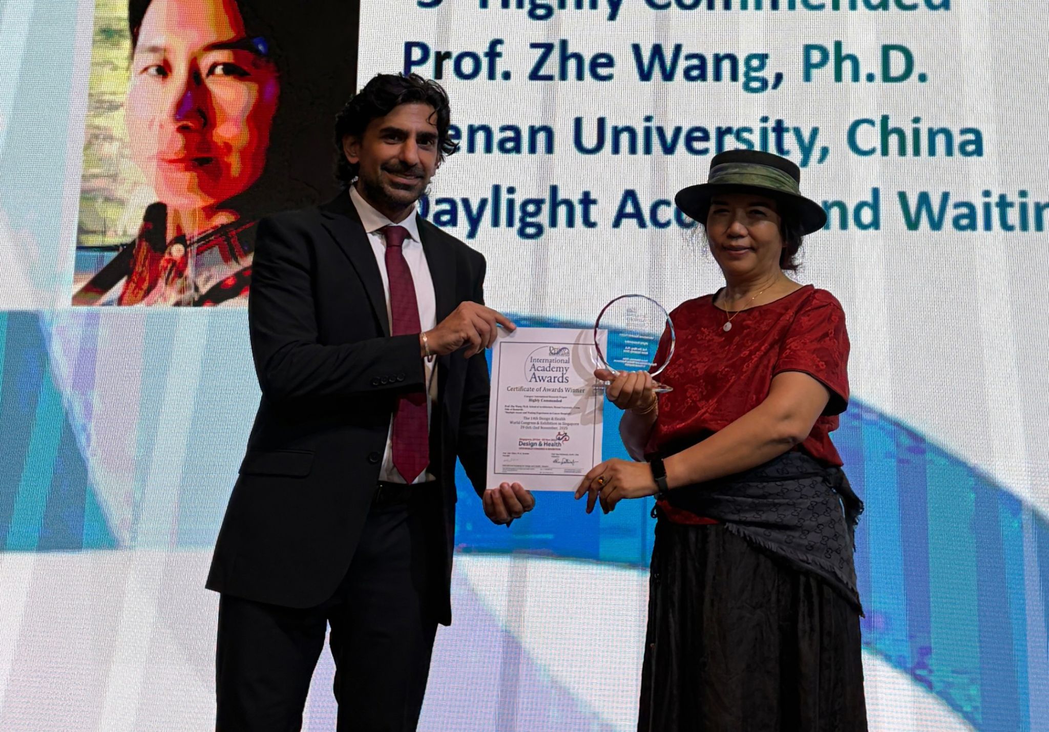教授 Alan Dilani 博士在颁奖典礼上指出:“王哲教授的研究不仅深化了我们对‘健康生成设计’理念的理解,更以科学实证的方式展示了建筑设计在促进人类健康与社会福祉中的积极作用。”