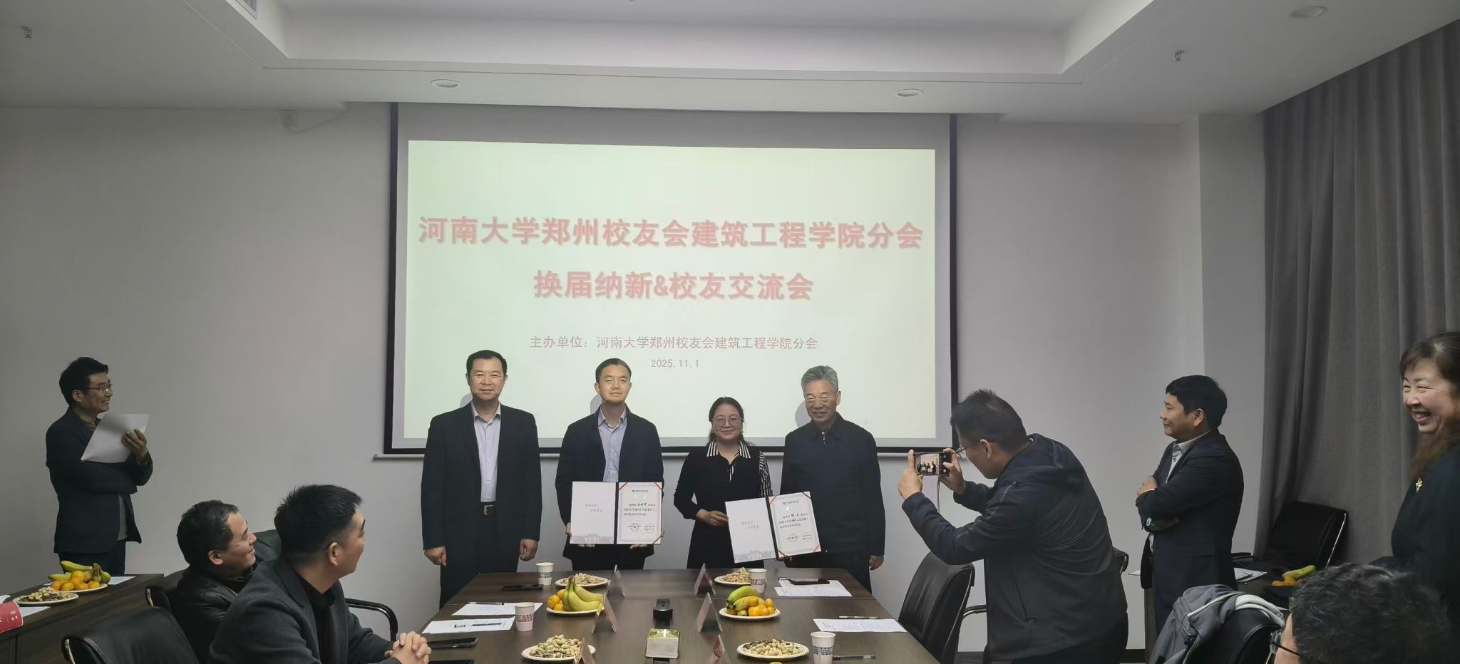 郑州校友会会长张占仓、秘书长李传荣、副会长郭建伟,建筑工程亚洲情色