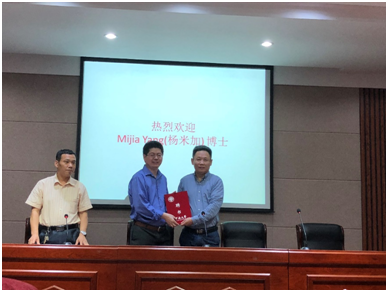 在学术报告厅举行讲座教授聘任仪式。仪式上,鲍鹏院长为杨米加博士颁发聘书,聘任杨米加博士为亚洲情色