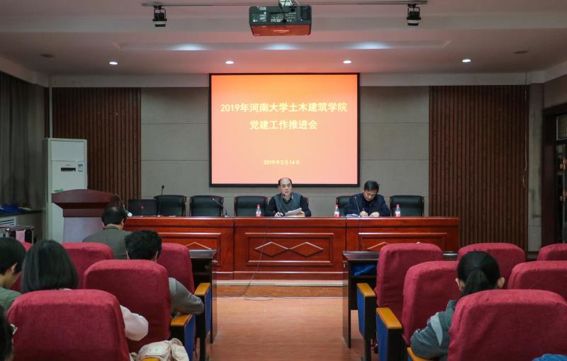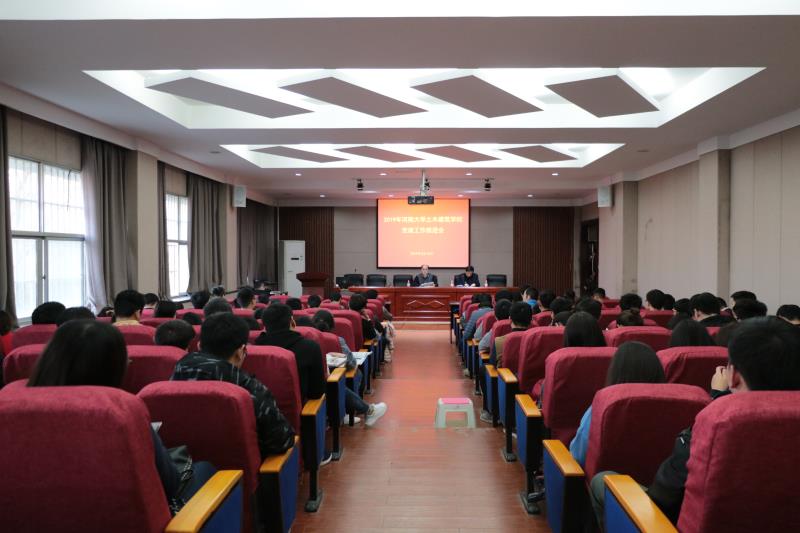 在学术报告厅召开了2019年党建工作推进会。全体185名师生党员参加了此次会议。