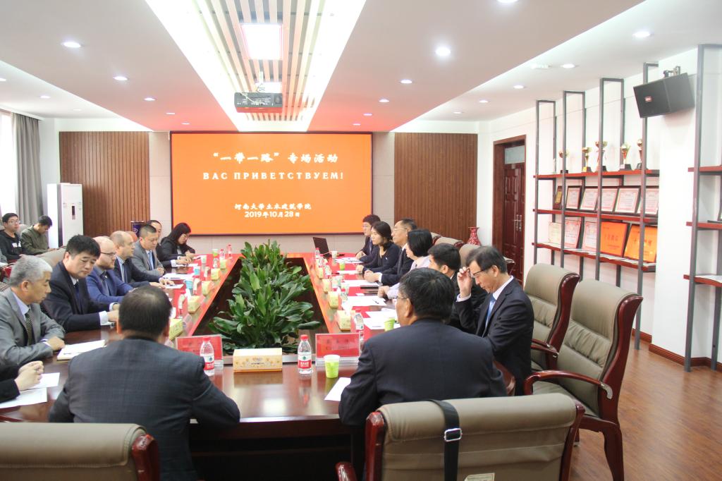 安德烈副校长对我校的热情接待表达了深深的谢意,并简要介绍了莫斯科国立建筑大学的办学历史和办学特色,尤其是在建筑类相关学科的发展,重点推介了他们学校的相关学术期刊及著作,并展示了他们参与的俄罗斯大型工程项目设计等,希望能够在历史遗产保护、土木工程学科建设等方面加强合作与交流。