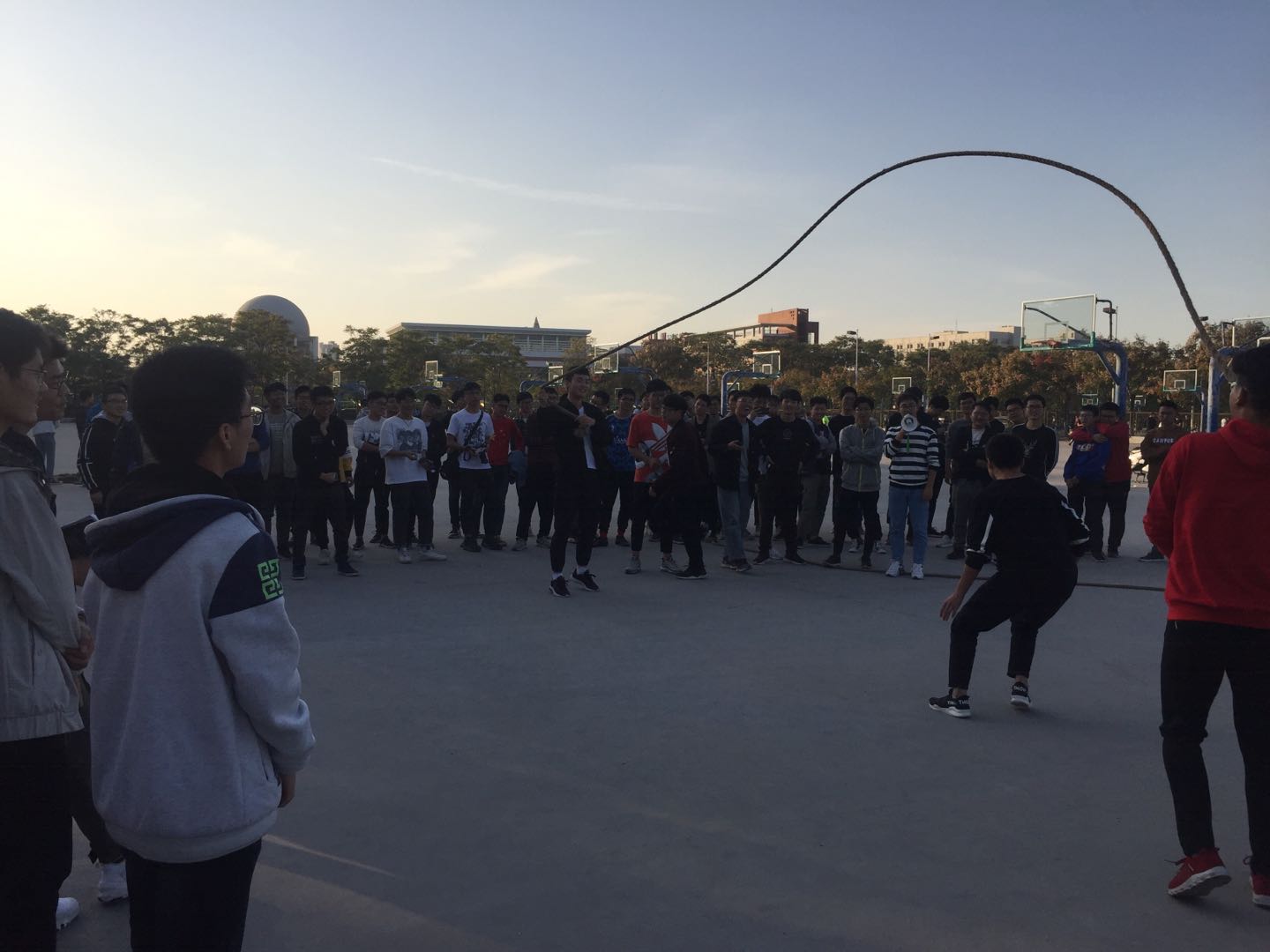 跳大绳,四人五足接力赛考验了同学之间的默契程度,增进了同学们之间的感情,让同学们明白,团结一致才是致胜法宝。