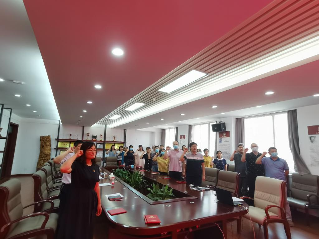 表彰大会后,全体党员在党办主任魏森杰同志的带领下,面向党旗,高举右拳,郑重宣誓,重温入党誓词,时刻提醒自己真正践行入党誓词。