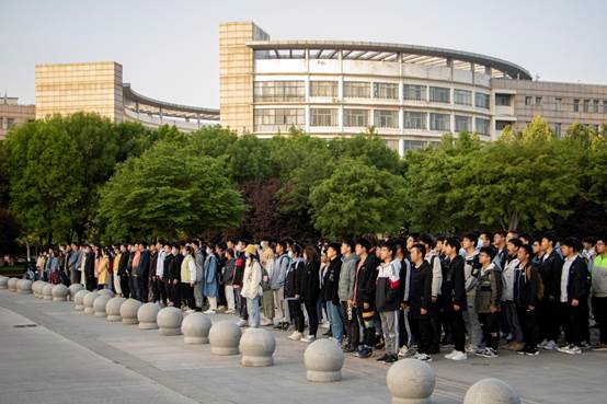 于校图书馆前广场上举行升旗仪式暨“国旗下的演讲”活动,学院全体学生和教师代表参与此次活动。