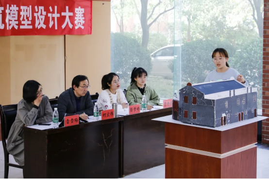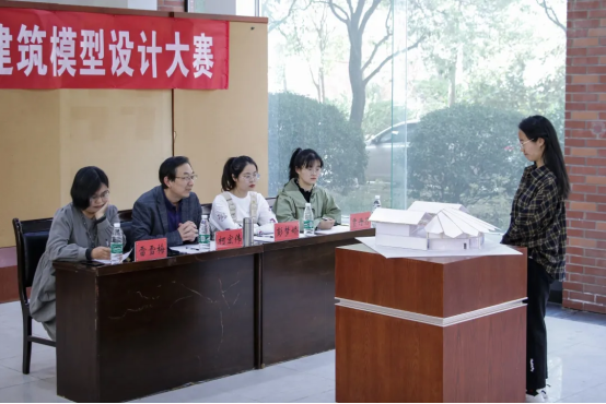 同学们以多个小组的形式参加本次比赛,经过讨论以及忙碌的制作后诞生出许多精彩作品。比赛过程中,各组同学分别向评委老师介绍参赛作品,出现了参赛人员设计的长征精神--万里长城、大别山革命纪念馆、赤水纪念馆等优秀的作品,这些作品不仅体现了同学们的建筑构模水平,更体现了同学们对红色事迹的了解和对红色精神的感悟。随后,各评委老师对每个作品进行提问,由参赛队伍排选出一名队员就相关问题作答。