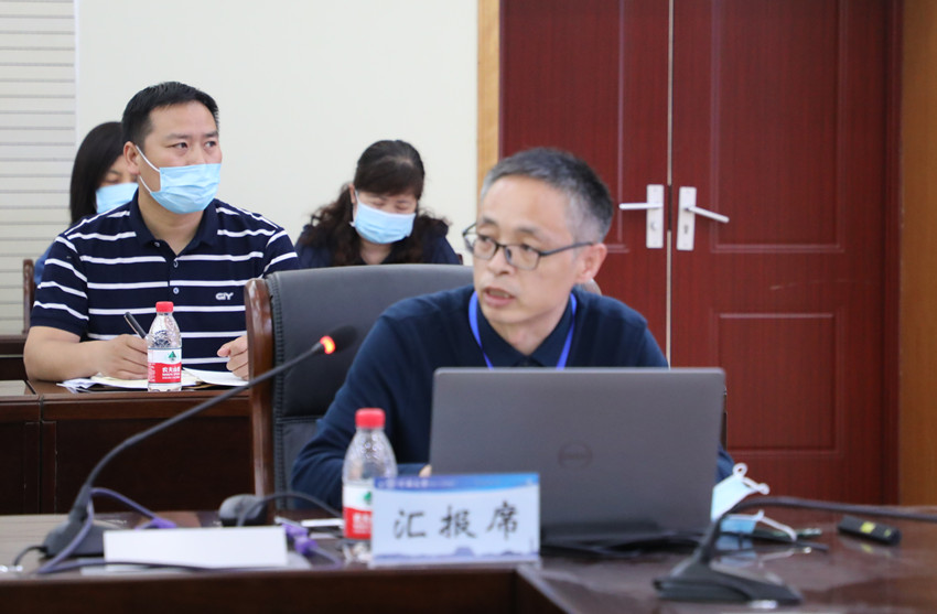 副院长张大伟从办学发展历史、思想目标和特色、发展现状、对上一轮视察落实情况、不足和改进措施等方面详细汇报我校建筑学专业建设及改进情况。