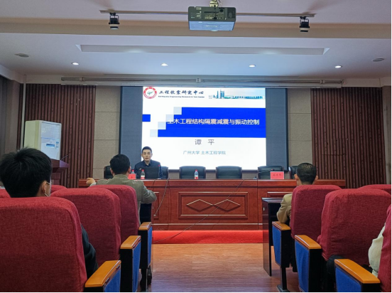 16D结构实验室二楼报告厅,做题为“土木工程结构的隔震减震与振动控制”的学术报告。土木工程专业部分师生聆听了报告,报告会由院长岳建伟教授主持。