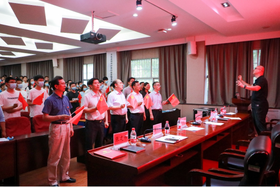 大会在庄严肃穆的国歌中拉开序幕。在党委办公室主任魏森杰老师的领誓下,大家举起右手,神情庄严,重温入党誓词,铿锵有力的声音充满了整个会议室。