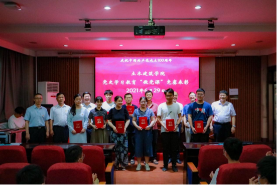 党史学习教育“微党课”获奖者和荣获学院优秀党员的师生颁发证书。