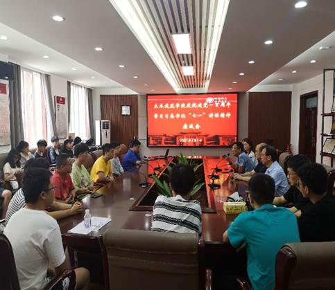 在16B204会议室召开学习贯彻习近平总书记“七一”重要讲话精神座谈会。部分研究生参加了会议,座谈会由党委副书记党玉敬主持。
