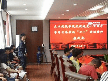 座谈会上,大家热议习近平总书记在建党100周年大会上的讲话,并结合党史学习教育,表达自己的爱国爱党情怀。