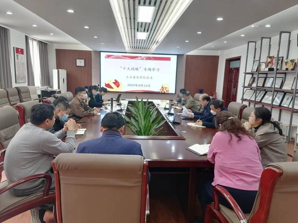 4月11日下午,学院党委组织班子成员、支部书记、行政教辅党支部等党员在204会议室开展十大战略学习动员活动。