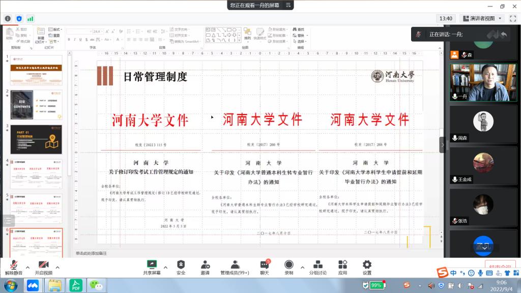 9月4日上午是“规章制度专题”,学院党委副书记赵艳忠按照“日常管理类制度”“奖励类制度”“处罚类制度”,带领同学们,重点学习了《亚洲情色