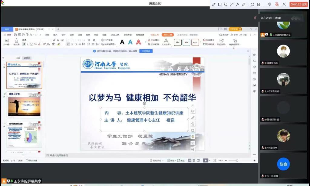 于线上召开2022级本科新生健康知识及大学生涯规划座谈会。