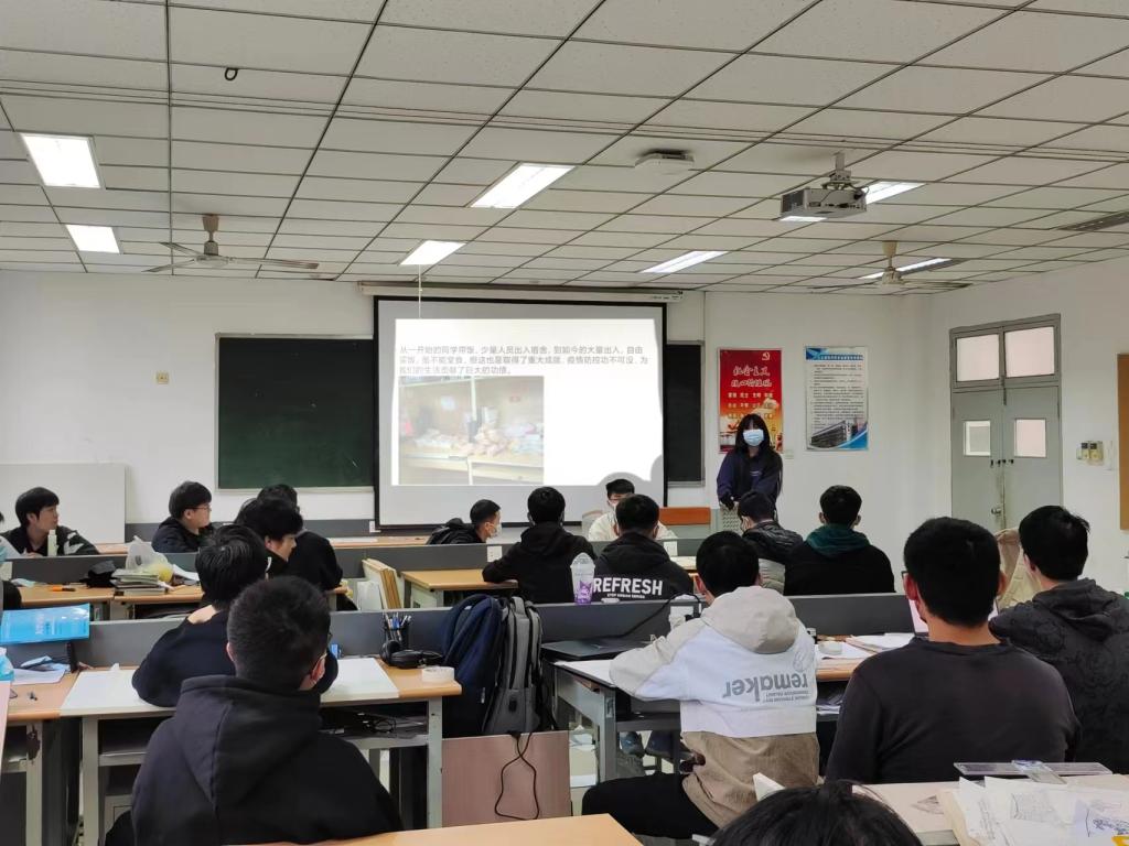 辅导员魏森杰老师首先就疫情防控常态化下学生管理工作要求,向同学们逐条详细讲解,让大家明白个人义务和责任。接着她结合当前疫情防控形势和我校抗疫实例,教育引导学生积极参与、主动配合落实学校疫情防控有关要求。她分享了2022级土木工程专业任晨阳的疫情感悟,引导学生增强规矩意识,自觉做法律法规及校纪校规的模范遵守者、积极宣传者和真正受益者。最后她又着重讲述了学风学纪和大学生文明礼仪等注意事项。