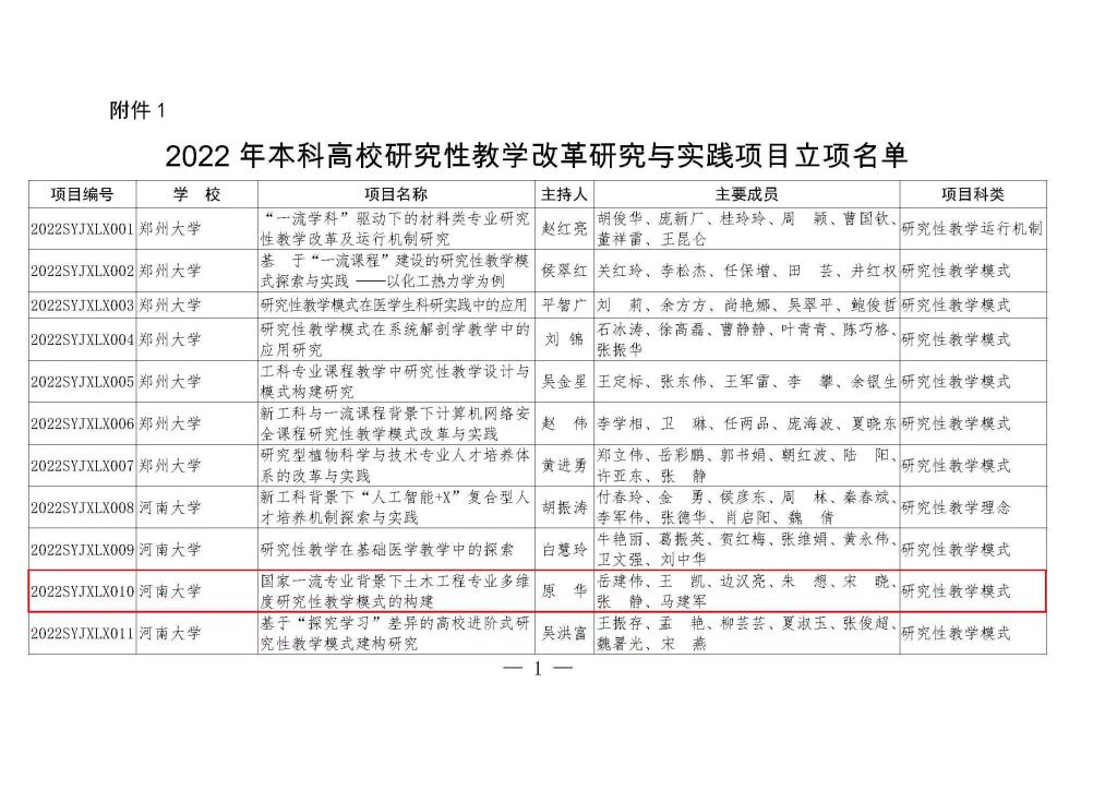 根据《河南省教育厅关于公布河南省本科高校研究性教学系列项目名单的通知》(教高〔2023〕36号),全校共获批研究性教学改革研究与实践项目6项,学院副院长原华主持申报的教改项目“国家一流专业背景下土木工程本科多维度研究性教学模式的构建”成功获批。