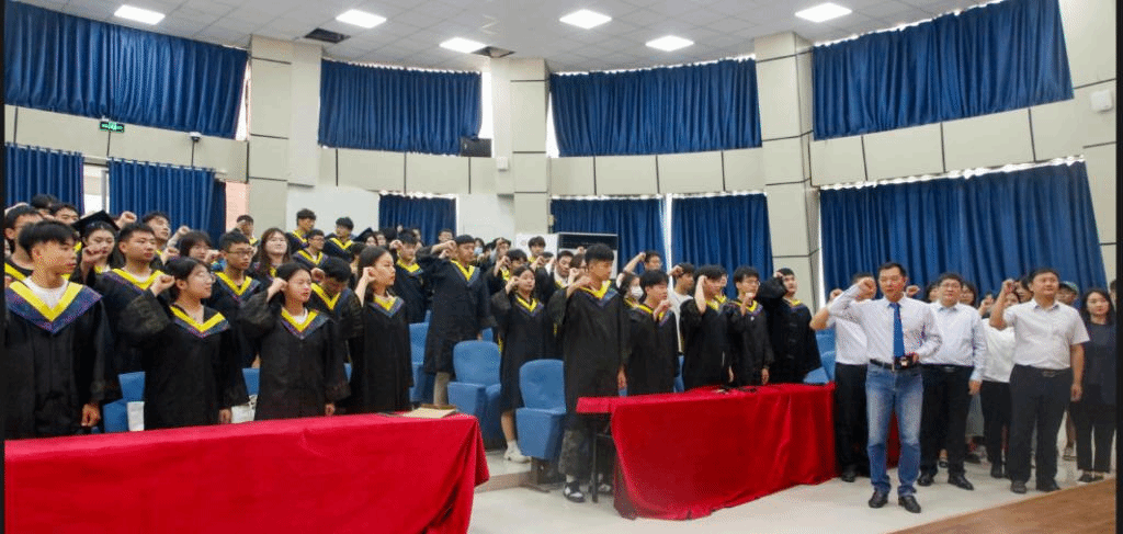践行誓言,扬帆启航。6月5日上午,学院2023届全体毕业生党员在锥形报告厅举行重温入党誓词宣誓活动,面向鲜红的党旗,在学院党委书记南晗同志的带领下,全体师生党员举起右拳,庄严宣誓。在一句句慷慨激昂的誓词里,毕业生党员将牢记初心使命,为党旗增辉。