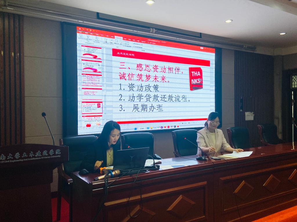 感恩资助相伴,诚信筑梦未来。2019级毕业班辅导员、学院助学贷款负责人李杨老师向毕业生介绍了国家助学贷款资助政策、助学贷款还款流程以及录取研究生同学的展期办理,讲明了诚信还款的重要性,要求毕业生遵守贷款合同承诺,按期还款,用诚信筑牢人生之基。