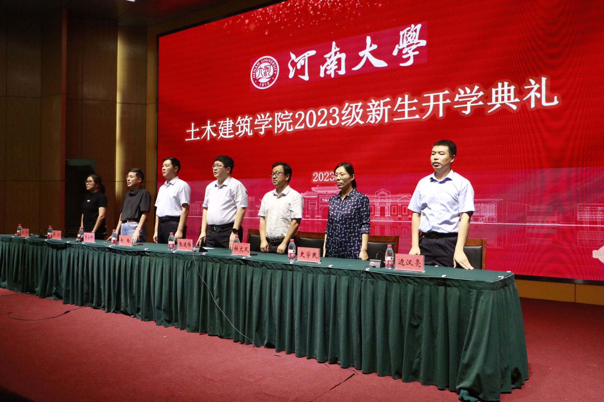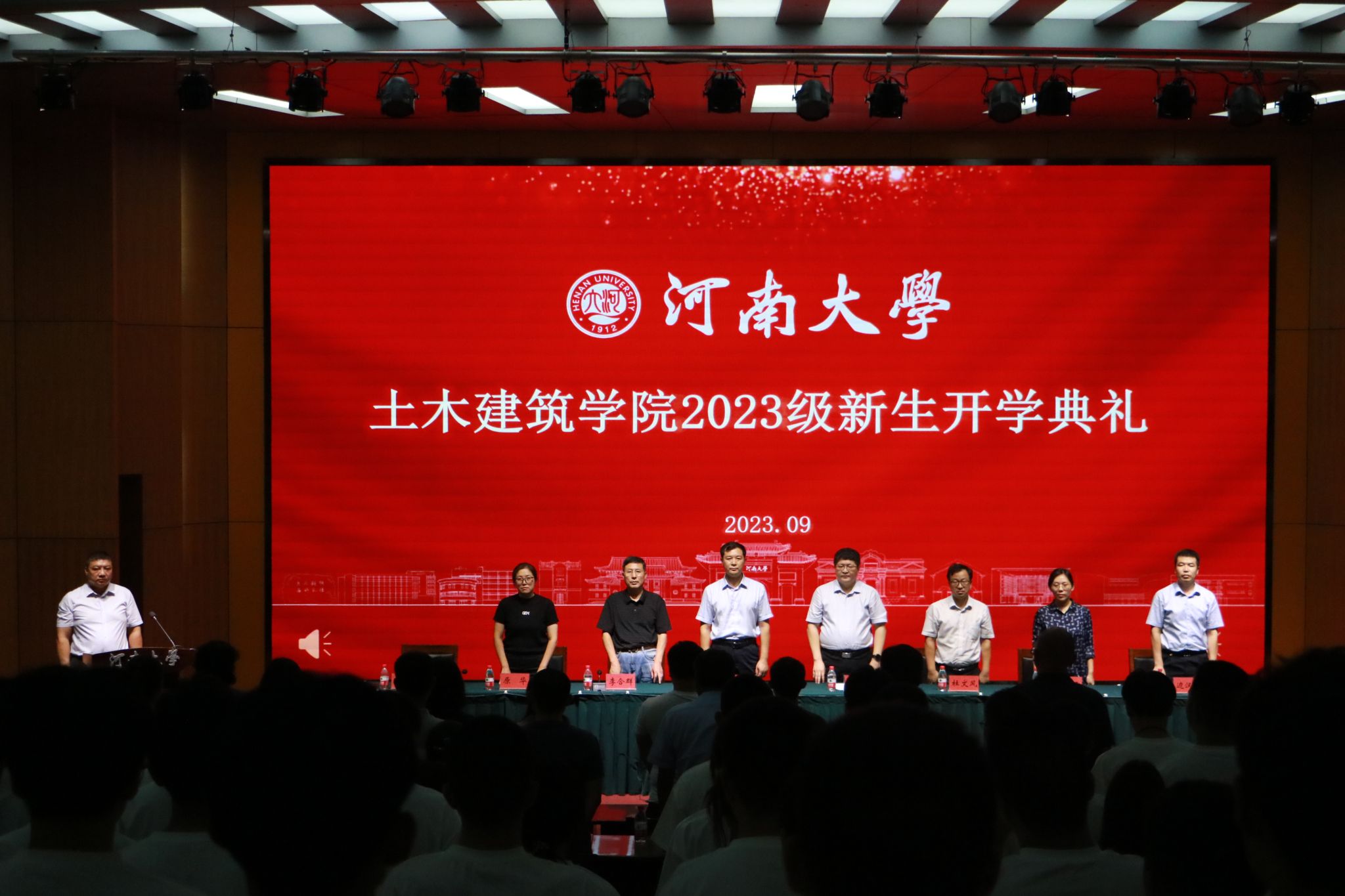 于金明校区计算机大楼二楼报告厅举行2023级新生开学典礼。学院党委书记南晗,院党委副书记、执行院长张建伟,河南省建筑学重点学科带头人李合群,河南省土木工程重点学科带头人杜文风,学院副院长李锋、原华、边汉亮、史学民,学院各系室主任、专业教师、辅导员老师、学生代表以及2023级全体研究生、本科生参加本次典礼。典礼由学院副院长李锋主持。