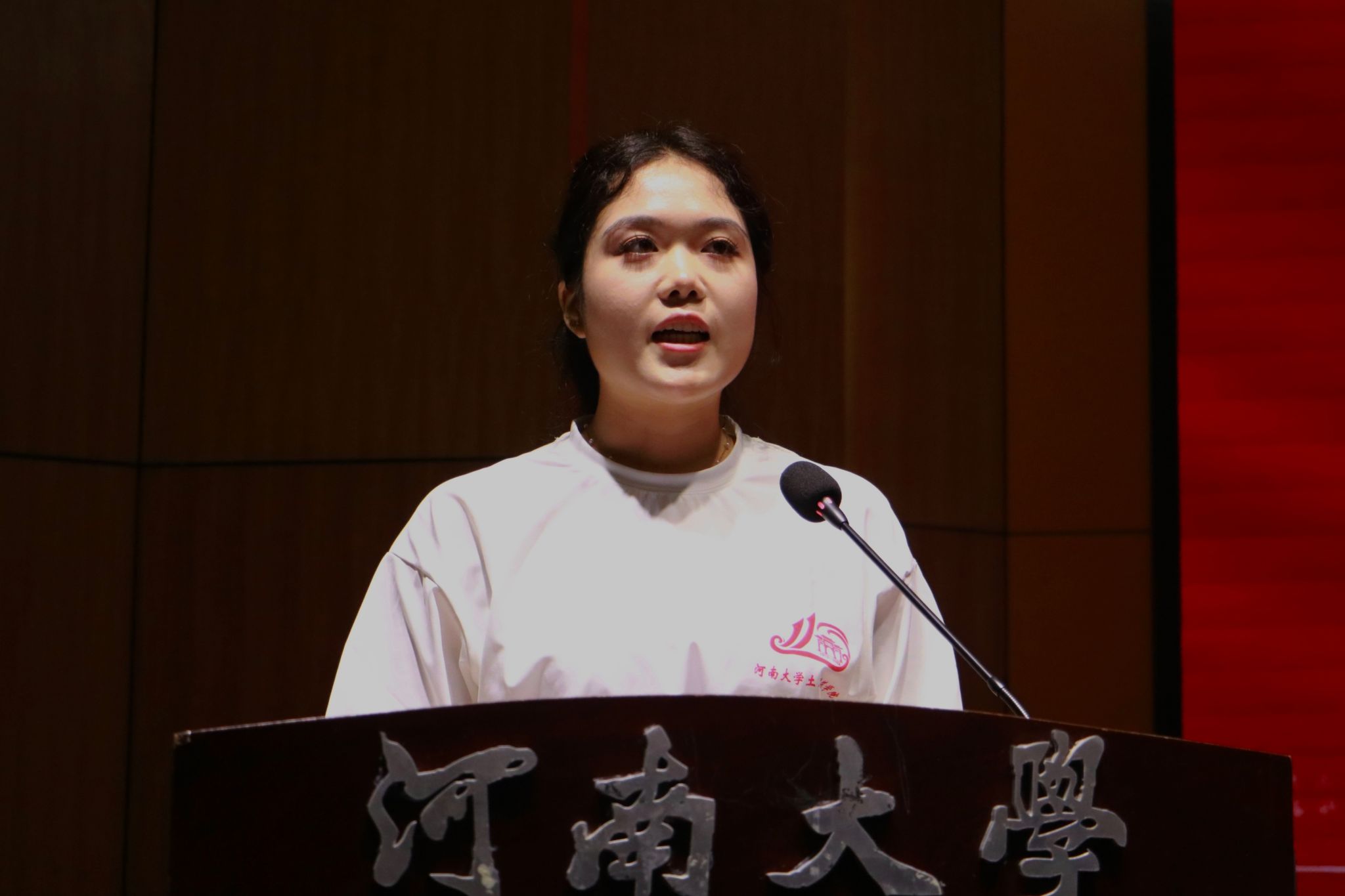 2023级研究生张树淼作为新生代表发言,表示将会以“百折不挠,自强不息”的河大精神为引领,努力奋斗,成长为优秀的河大青年、出彩青年。