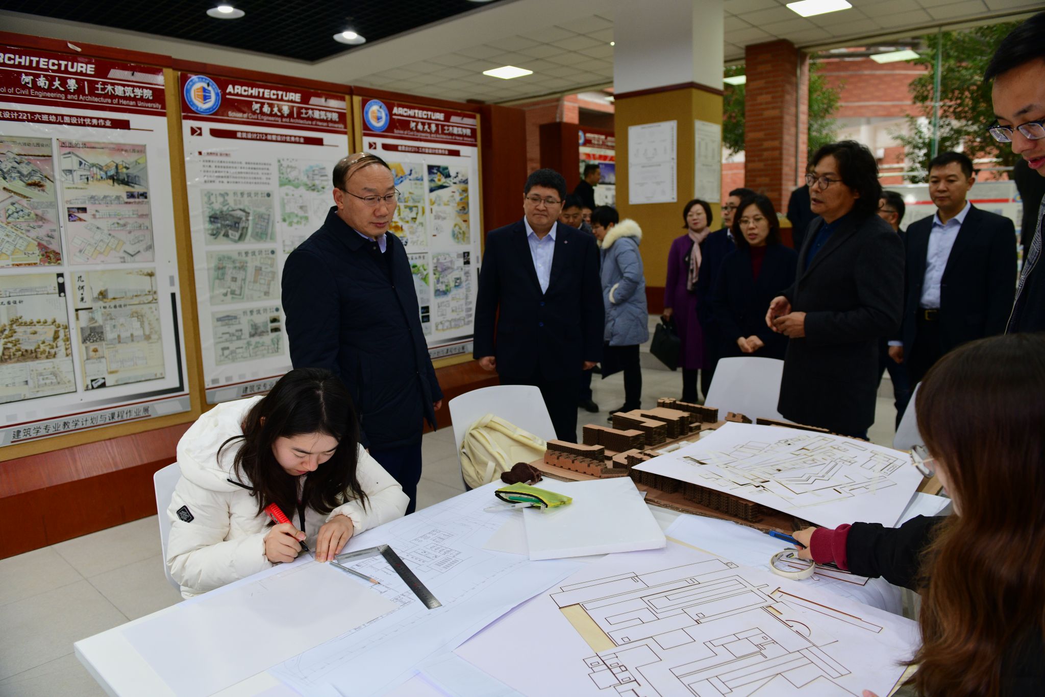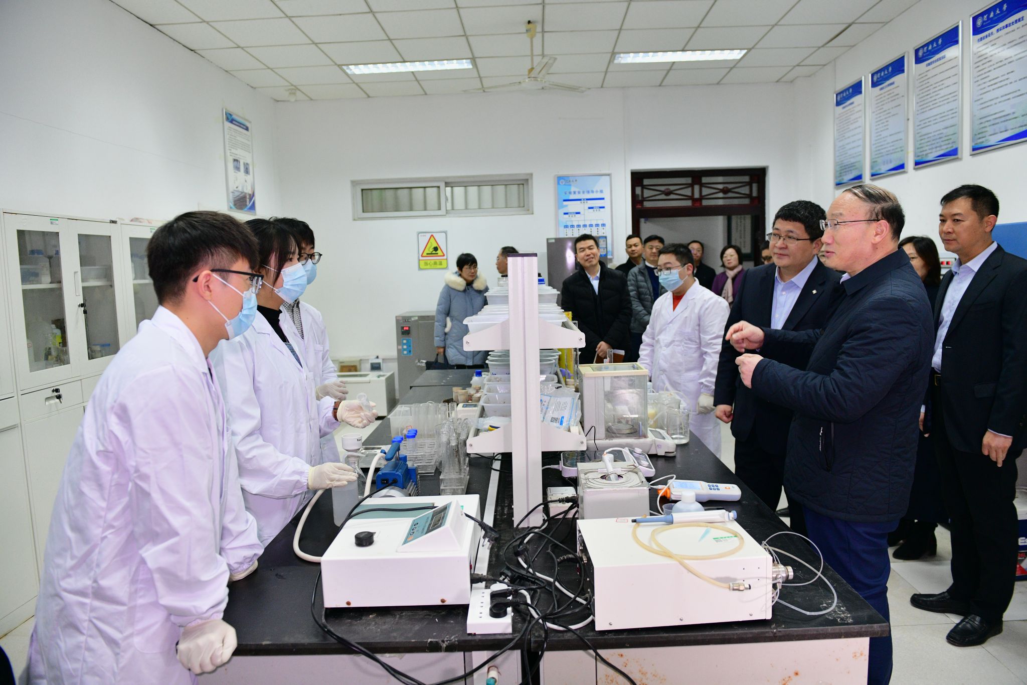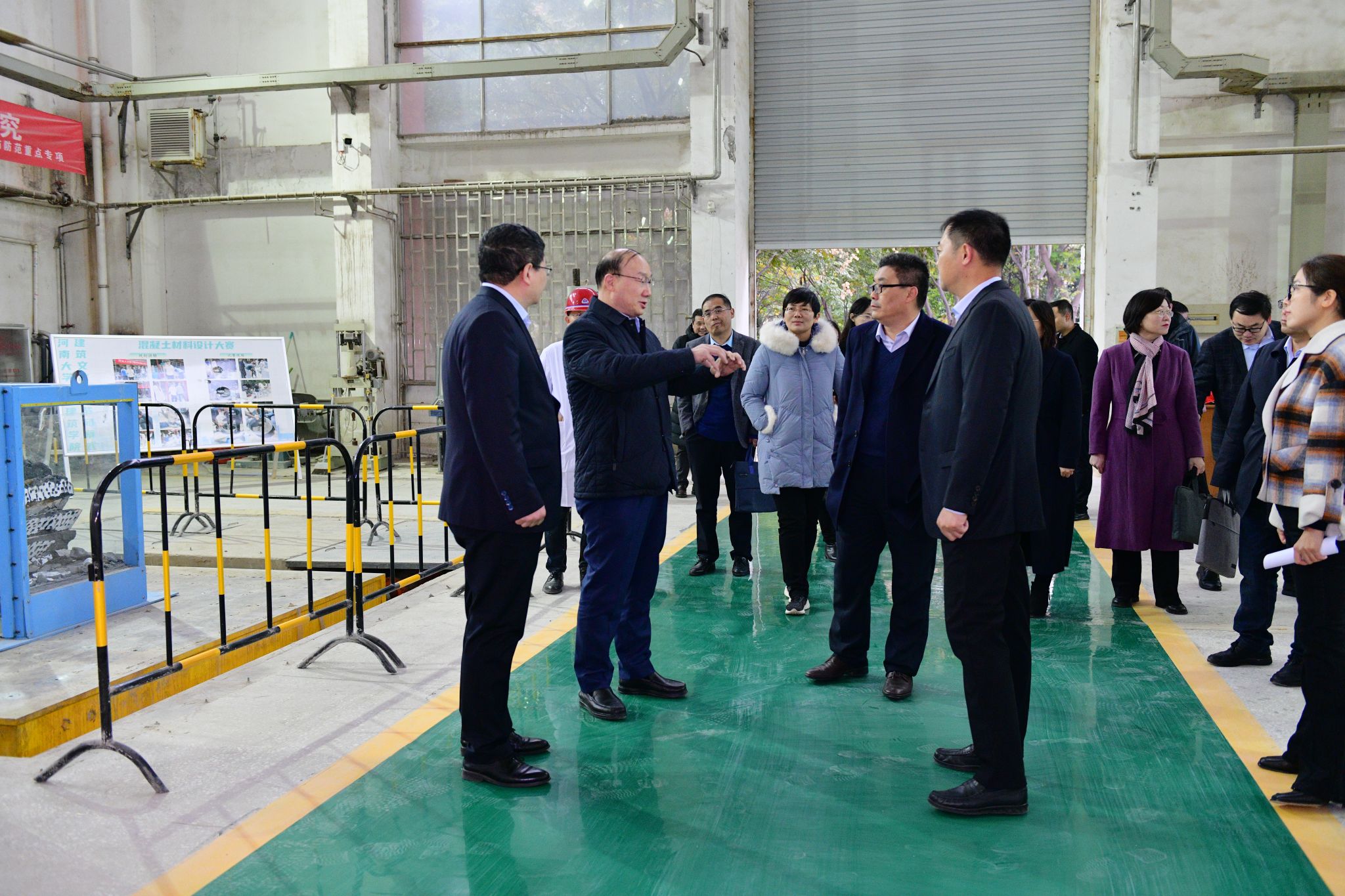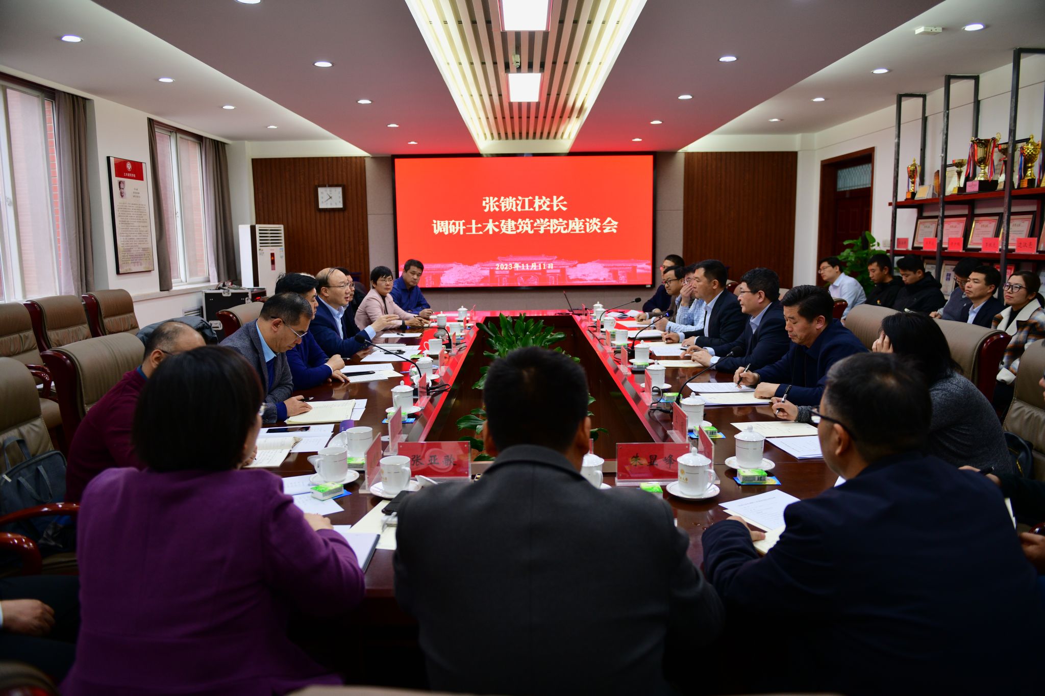 座谈会前,张锁江一行实地考察了结构实验室、建筑学展厅和微生物岩土实验室,详细了解学院基础设施和研究进展。