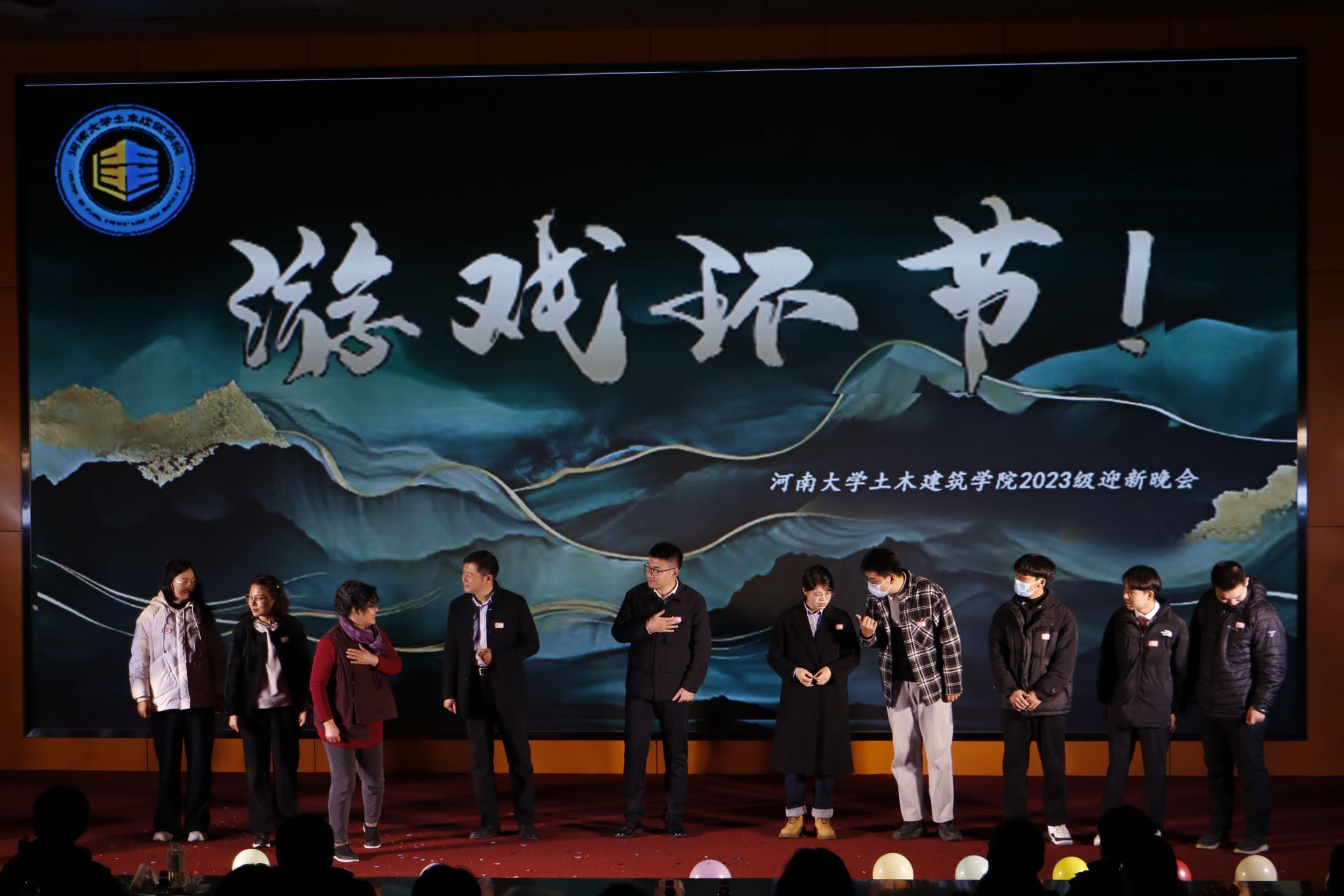 2023年迎新晚会。本次晚会由2023级研究生张文诗,2022级本科生穆彧,2023级本科生宁继增、陶帅主持。