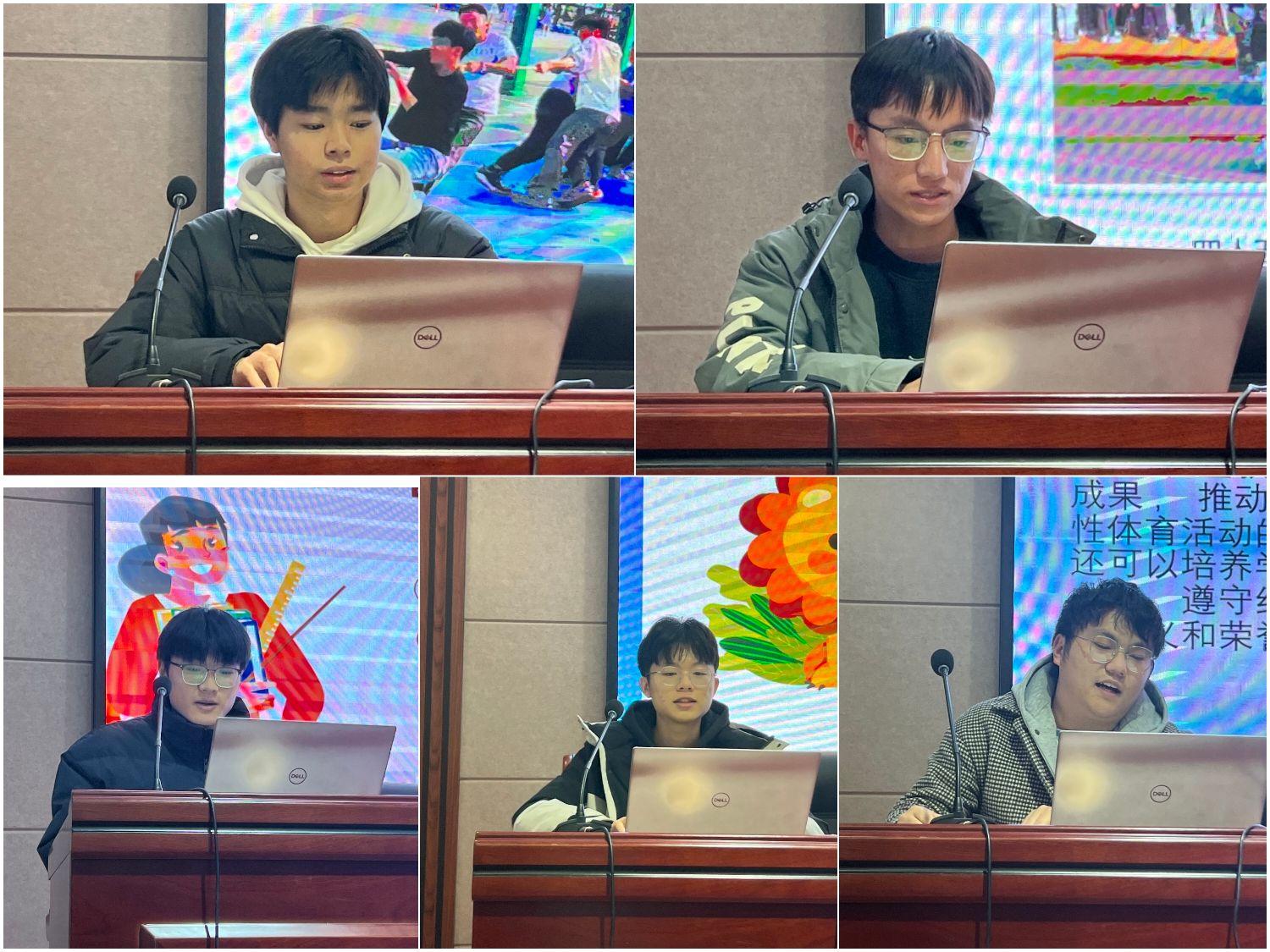 辅导员魏森杰老师和5个班长分别总结了一学期年级和班级在学习、生活方面的情况,魏老师宣读了获得奖学金的同学名单,并对班级工作付出辛勤努力的学生干部表示感谢。