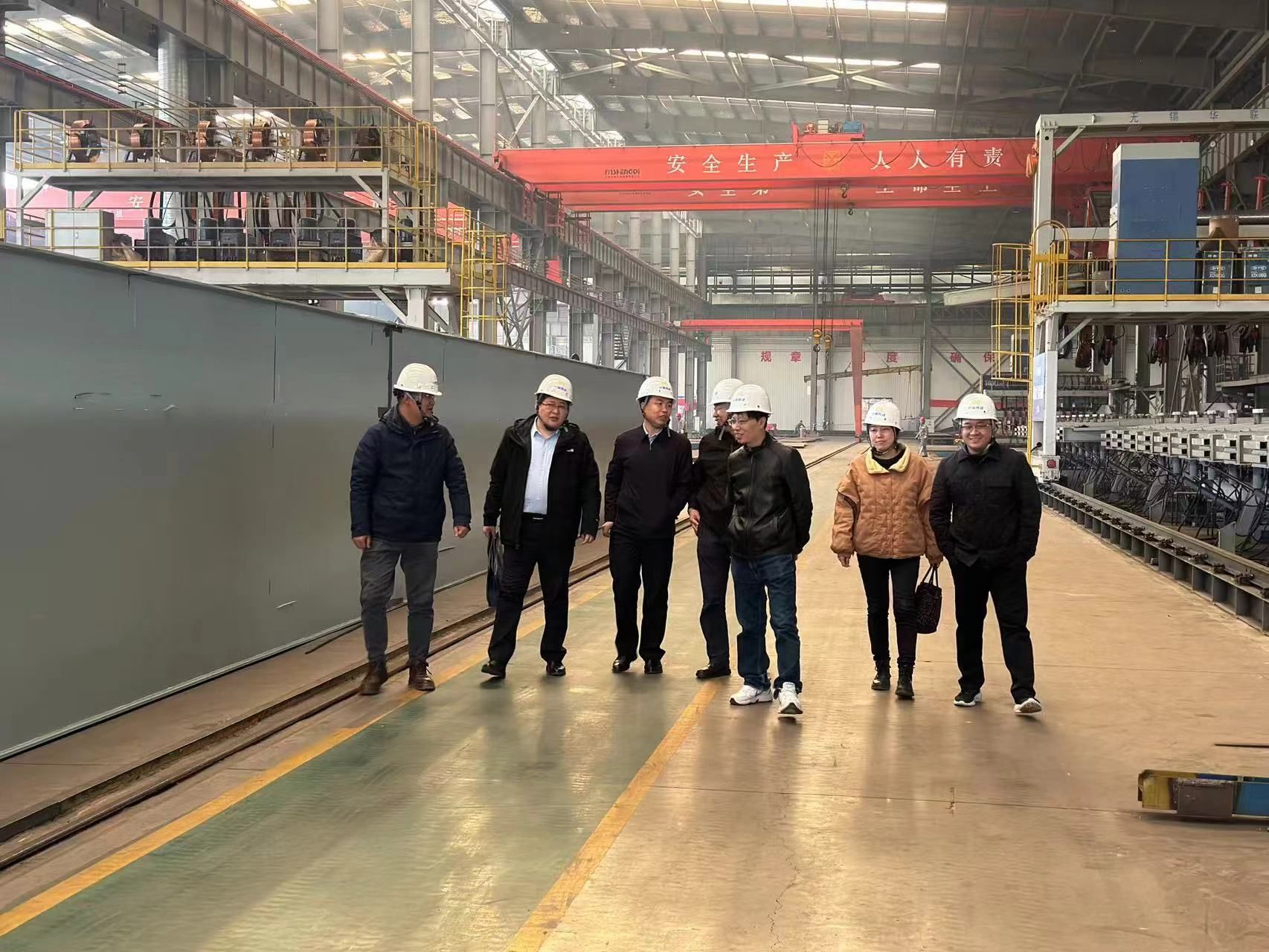 在河南省交通规划设计研究院股份有限公司,张建伟一行与副总经理、桥梁设计研究院院长李斐然,围绕科研合作、人才培养、实习实训、实践基地建设等问题进行了深入交流,并考察了河南省交通规划设计研究院股份有限公司下属河南中鼎智建科技有限公司,听取了中鼎智建企业负责人对省内钢结构桥梁应用情况及中鼎智建在桥梁钢结构领域的产品介绍,实地参观了智能化生产车间波形腹板、装配式钢箱梁等智能一体化制造工艺。