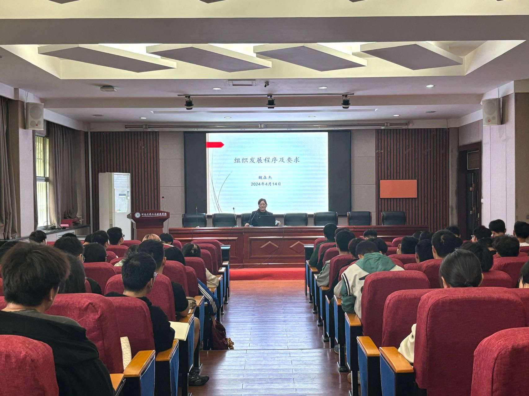 4月11日下午举行了开班仪式。学院党委书记南晗出席大会。学院124名入党积极分子与25名“青马班”学员参加仪式。仪式由学院学生工作负责人、培训班班主任宿云龙主持。