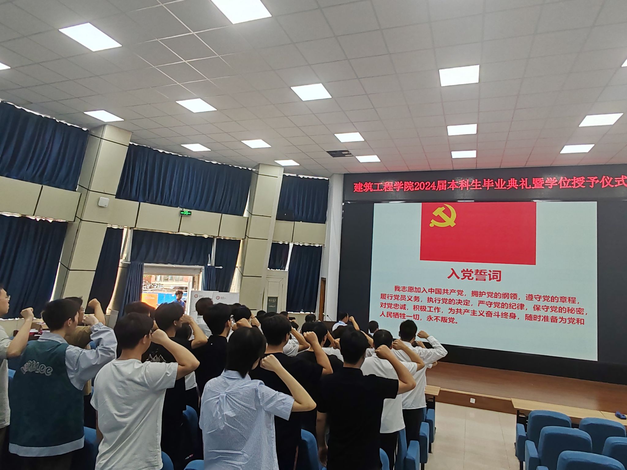 党委书记南晗,执行院长张建伟、副院长李锋、史学民、边汉亮,学院1989级校友、河南三建建设集团有限公司董事兼河南宏创建设工程有限公司总经理、教授级高级工程师李连勇,学院教师代表,毕业生及家属代表齐聚一堂,共同见证2024届本科毕业生这一人生中的重要时刻。典礼由学院团委书记宿云龙主持。