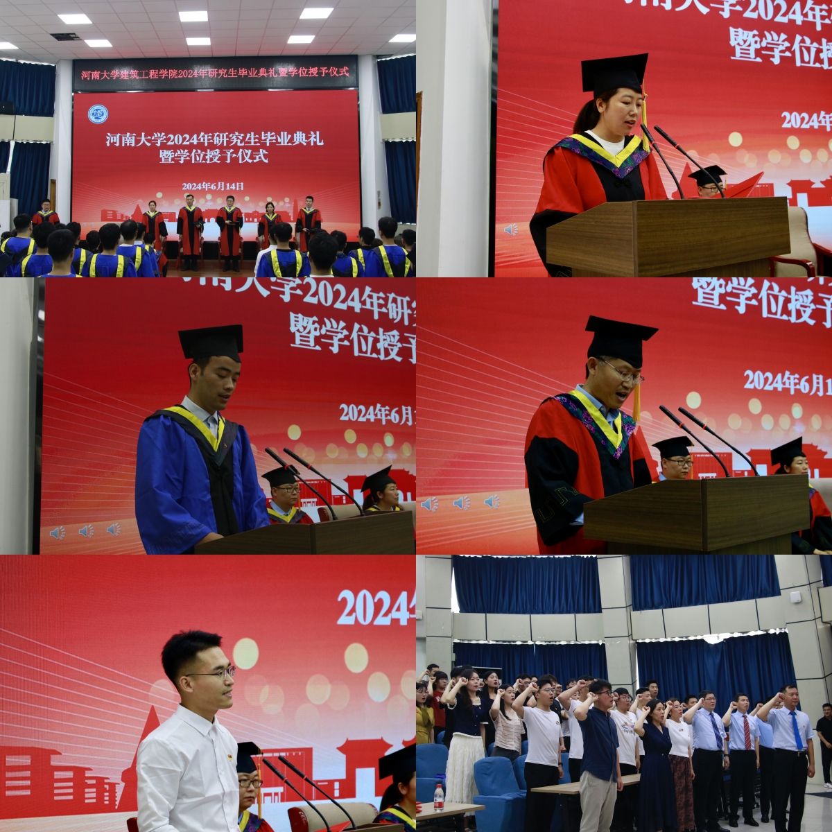 2024届毕业研究生代表土木工程专业顾金超同学分享了自己三年来在学习、科研和生活上的感受。他衷心地感谢学校和学院的培养,以及老师、同学和家人的支持。他说,学在河大,臻于至善,河大学子将以建设祖国作为自己的使命担当,用青春谱写最华丽的篇章!他祝愿母校和学院更上一层楼,老师们身体健康,同学们前程似锦。