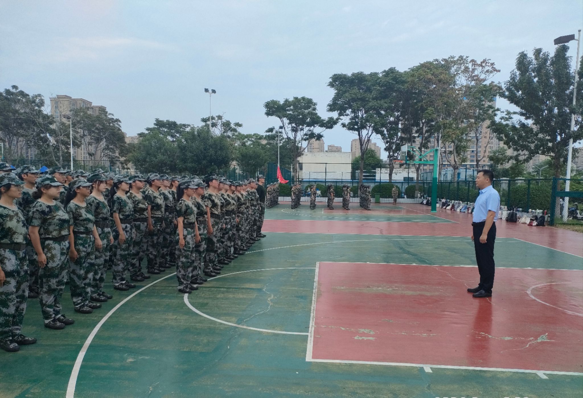 烈烈阳光下,2022级全体军训学生身着整齐的迷彩服,精神抖擞,军姿挺拔,以斗志昂扬的精神展现建筑工程亚洲情色