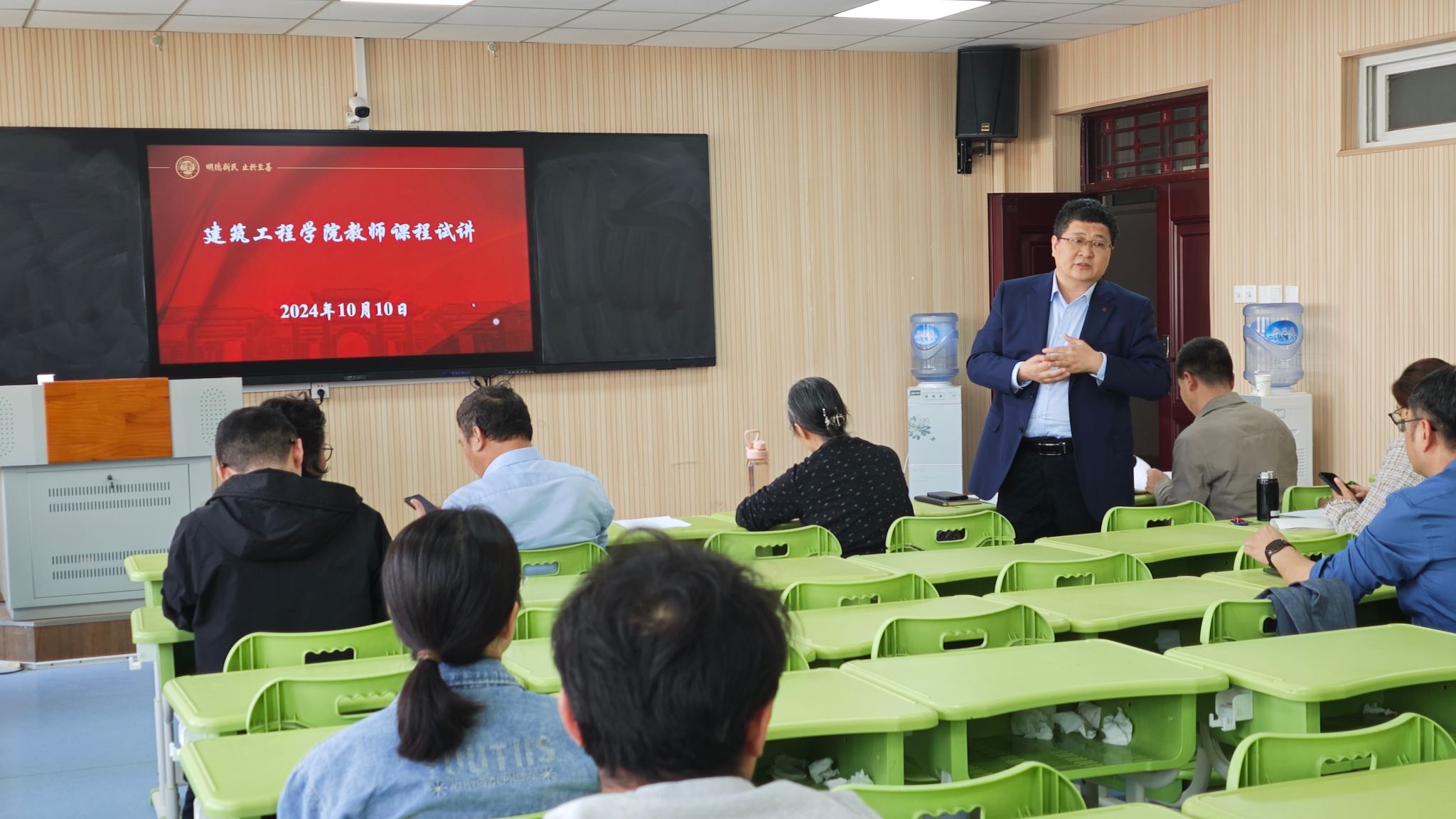 随后开始试讲,本次试讲包括模拟授课和专家点评两个环节。建筑学和土木工程两个专业共15位教师结合自身优势,通过精美的PPT展示和巧妙的教学设计,展现了他们认真的授课态度和深厚的专业素养。