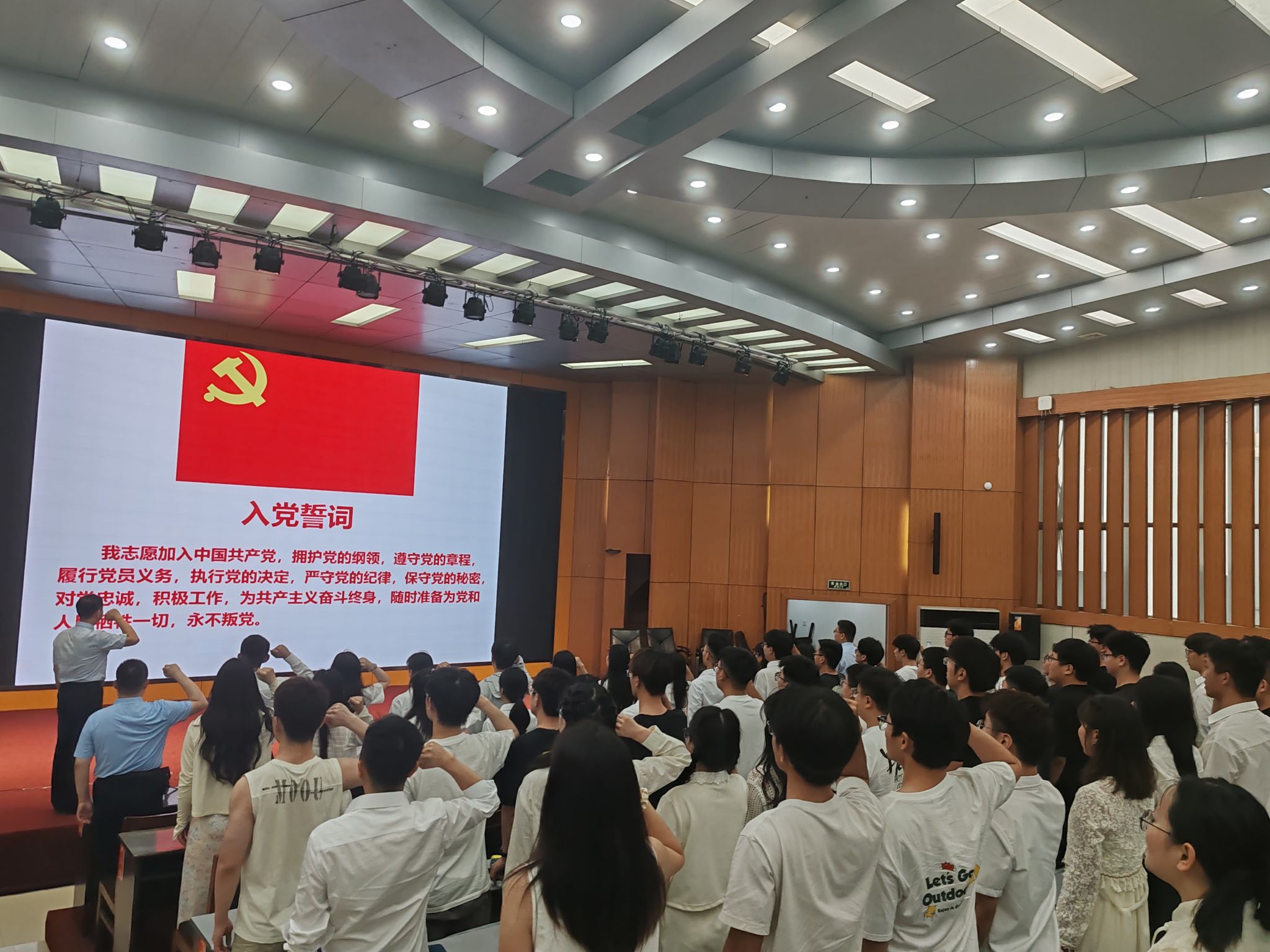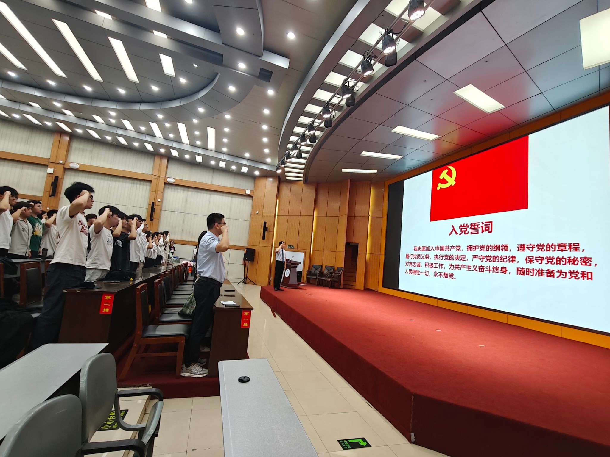 毕业典礼前,南晗带领毕业年级党支部全体党员面向党旗庄严宣誓,重温入党誓词。同志们将初心牢记心中,将使命担在肩上,心怀坚定的理想信念,开启新的征程。