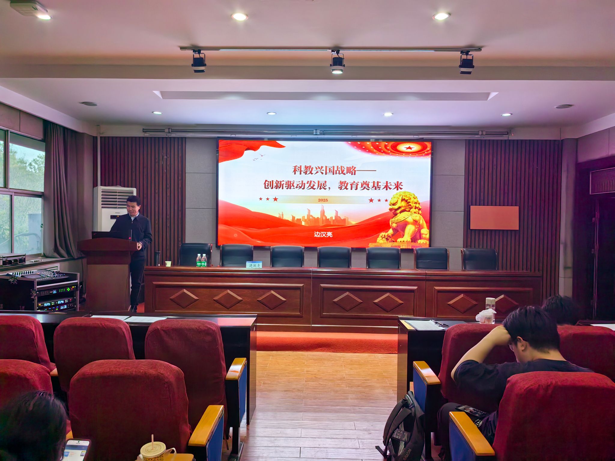 副院长边汉亮围绕“科教兴国战略”展开讲座。他阐明了创新驱动发展,教育奠基未来的重要意义,鼓励青年学子结合自己专业所学,勇担时代重任。