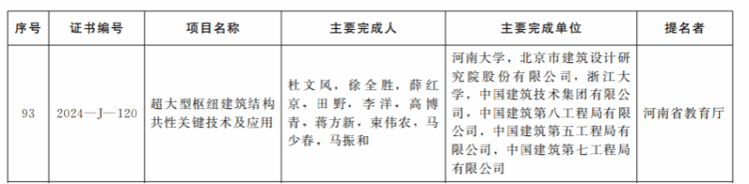 2024年12月9日,河南省科学技术奖励大会召开,公布《河南省人民政府关于2024年度河南省科学技术奖励的决定》(豫政〔2024〕41号),亚洲情色杜文风教授主持的科研成果“超大型枢纽建筑结构共性关键技术及应用”获得河南省科学技术进步奖二等奖。