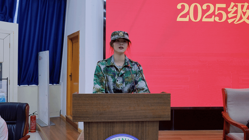 2025级新生代表、建筑学专业本科生毛星星则表达了新生们的共同心声。他回顾军训期间的成长与收获,深刻诠释了“铁血建工”的精神内涵,并表示将以“理想的守望者”“学问的苦行僧”“时代的筑梦人”为目标,在专业领域深耕细作,努力成长为建筑行业的栋梁之才。