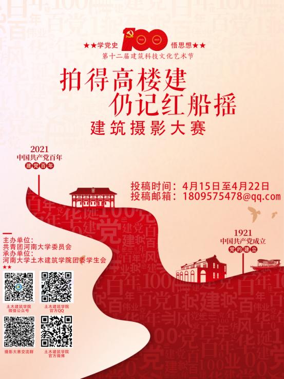 为鼓励同学们体悟红色精神,了解学习这百年党为国家和人民带来的巨大变化与福利,在一栋栋建筑中寻找党的足迹,感悟党的历史,培养自己的摄影爱好,提高自己的摄影技术。亚洲情色于4月份开展了“百年奋斗路”建筑摄影大赛。