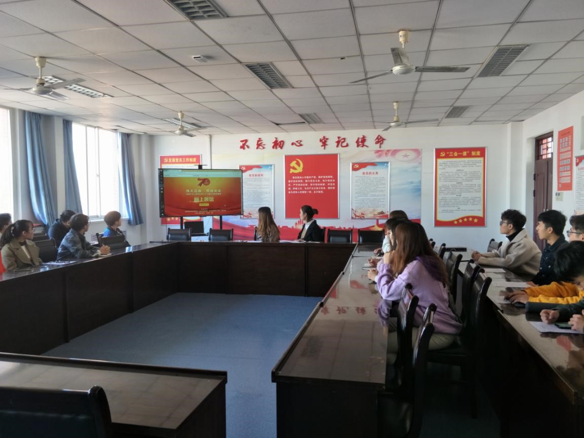 On November 14, 2019, the second party branch and the third party branch of our college jointly held the party day activity with the theme of "four questions about the original intention and mission" and the Forum on learning and watching the 70th anniversary of the founding of the people's Republic of China. All Party members of the branch participated.