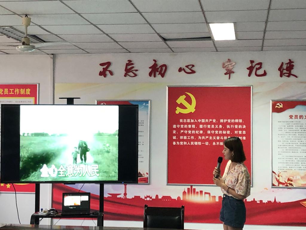 Mr. Wei Senjie, Secretary of the Party branch, recited the poem "party, we sing for you". Party members sang many red songs, such as "the red flag flutters", "the motherland will never forget", "unity is strength". Mr. Wei's song "singing a folk song to the party" raised the enthusiasm of all Party members. As a party member, the sense of honor and mission arises spontaneously.