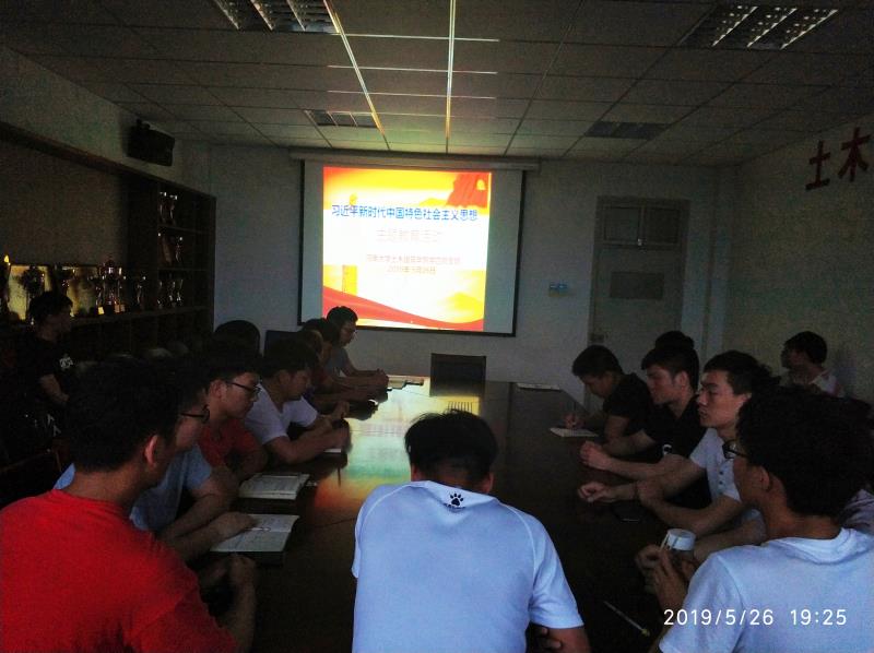 On the evening of May 26th, the fourth party branch of our college held the theme party day activities of "Xi Jinping's special topic study and Study on China's socialist ideology with new era" in the hospital 511, and the learning activities were hosted by the Party branch secretary Fang Zhongyang.