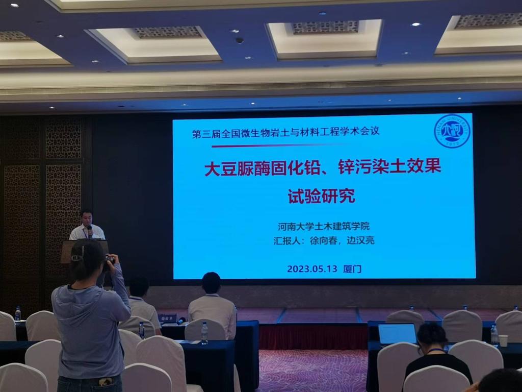 张建伟教授作为全国微生物岩土与材料工程学术委员会委员,在会上作了题为《紫外诱变产脲酶菌株加固粉土的试验研究》的特邀报告,并作为主持人进行了分会场的会议主持。岳建伟教授作了题为《基于碳化原理的遗址土性能改良的试验研究》的特邀报告。边汉亮副教授与徐向春博士作为中国岩石力学与工程学会环境岩土工程分会青年委员,分别作了题为《EICP修复重金属污染土的环境稳定性研究》及《大豆脲酶固化铅、锌污染土效果试验研究》的主题报告,展示了亚洲情色教师在本领域的研究特色和学术水平。