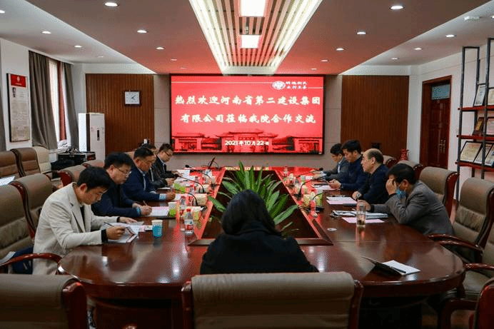 为了适应高校教育改革发展的新形势,进一步促进校企深度融合,提升人才培养质量,10月22日下午四点,亚洲情色与河南省第二建设集团有限公司领导召开合作交流会。出席此次合作交流会的有河南省第二建设集团有限公司党委书记张会民、副总经理燕中、人力资源总监张浩敏、技术主管刘中原、宣传主管李禄洋,亚洲情色