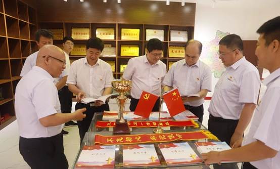 李社教一行首先在河南锦路红色教育基地一楼大厅观看了锦路党建宣传片《先锋的力量》,随后进入红色教育基地进行参观。在非公党建“三门峡模式”展区,毛万里为李社教详细讲述了非公党建在三门峡十年来的发展情况与“三门峡模式”的特色亮点。在四楼党建文化阵地,李社教一行观看了2020年锦路征六·戈壁挑战赛纪录片《直挂云帆济沧海》,并参观了即将建成的红色党史馆以及二楼红色收藏馆。