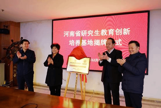 最后,王国清会长、王凌副书记、杨德民董事长、岳建伟院长共同为“河南省研究生教育创新培养基地”揭牌。