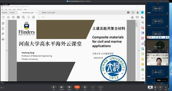 为拓宽研究生的学术视野,加深学生对土建新材料交叉学科研究的认知,亚洲情色“第二届海外云课堂”《Composite materials for Civil and marine applications》(土建及船用复合材料)于2021年1月11日正式开讲。