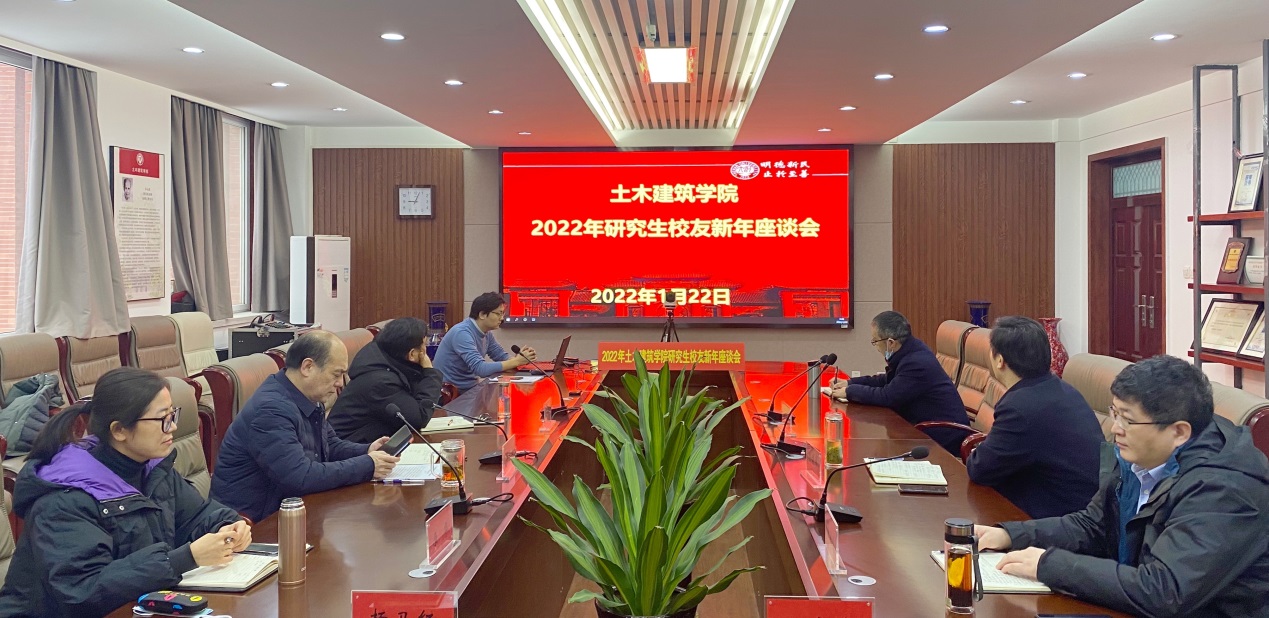 党委书记李社教、院长岳建伟、副院长党玉敬、张大伟、张建伟、原华等全体领导及校友办主任杨卫红在土建院校史馆线下参会,各届研究生校友共计110余人在全省各地线上参会。