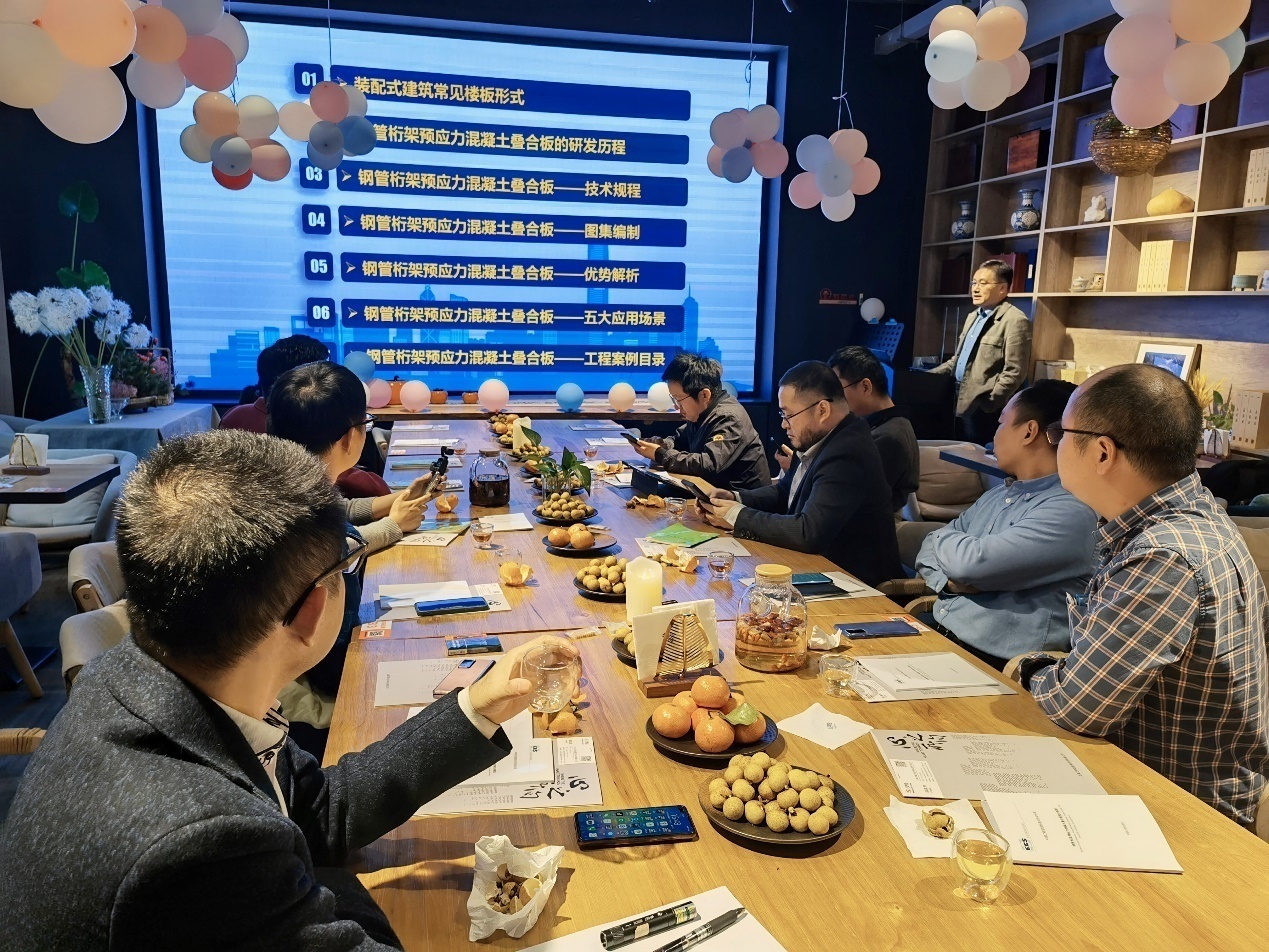 上海校友会秘书长李剑梅宣布交流会正式开始。首先给大家分享的是我们的特邀嘉宾郝坤超博士,郝博士是上海万斯达建筑科技有限公司的董事长,教授级高级工程师,国家土建结构预制装配化工程技术研究中心-中建科技-万斯达工程技术研究中心副主任。郝博士通过《装配式建筑楼板实践与探索》的分享,向大家分享了一种先进的装配式建筑楼板形式——钢管桁架预应力混凝土叠合板(PK板),从生产工艺、施工工期、成本控制、技术高度、应用场景等方面与传统装配式建筑楼板进行了对比,向大家展示了新型装配式楼板的综合优势,给大家打开了建筑新工艺的一扇大门。